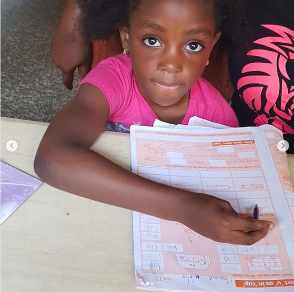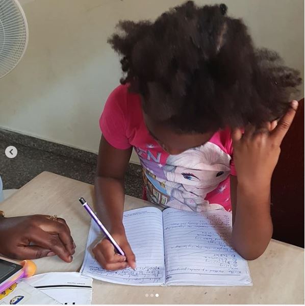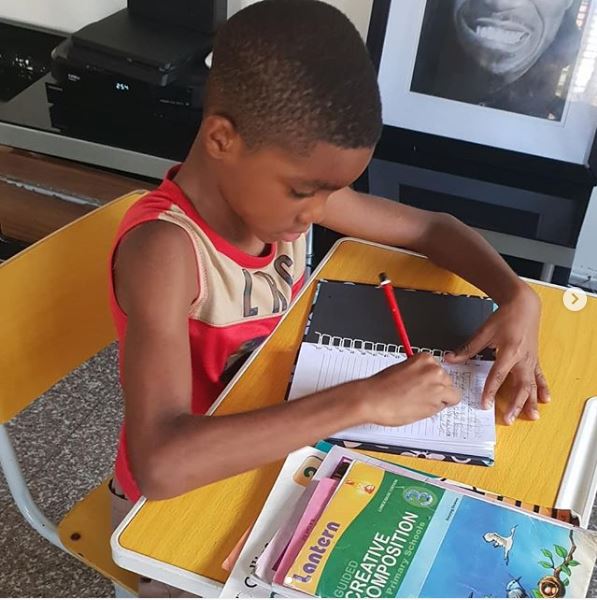 These are some adorable photos of Timi Dakolo's cute children doing their homeworks after school.