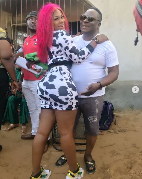 Destiny Etiko appeared excited about meeting comic actor, Charles Okafor as she swung her massive hips around him on set.