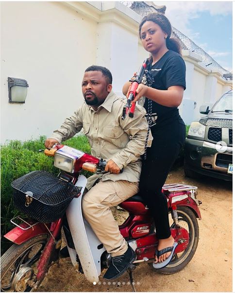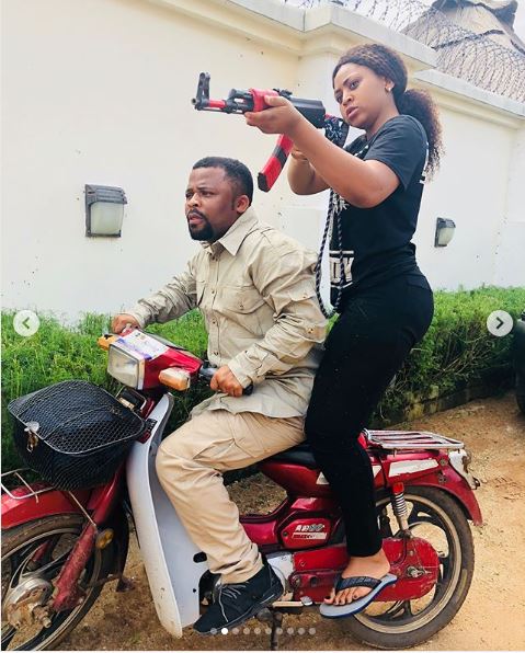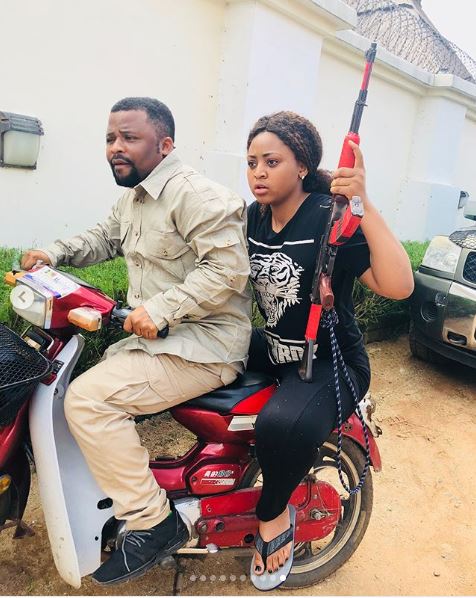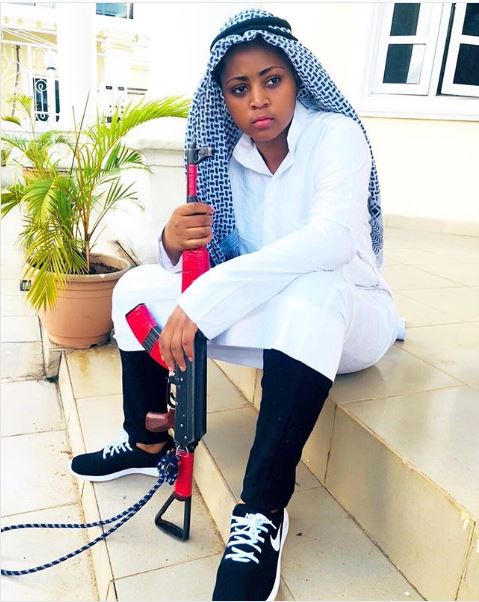 Regina Daniels is very beautiful and she knows it. The 17 year old was recently seen in a native Arab outfit as she posed with a gun.