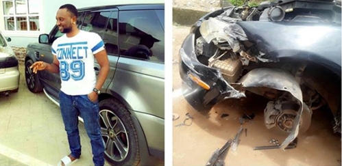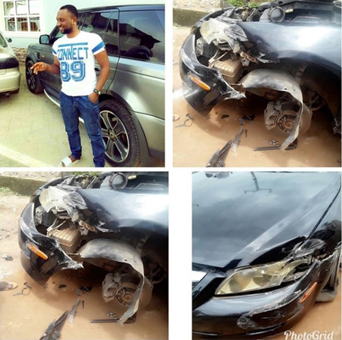 Fast-rising Nollywood actor, Austin Emmanuel, has taken to his Instagram page to share a photo showing his wrecked car after he had an accident.