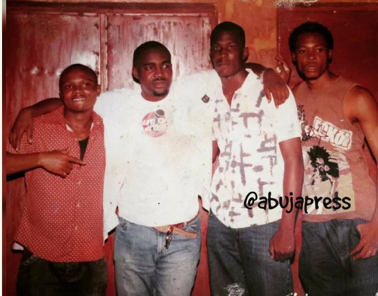 This is an undated photo of indigenous rapper, Nigga Raw and contemporary highlife singer, Flavour and their friends in the South-east before fame and wealth.