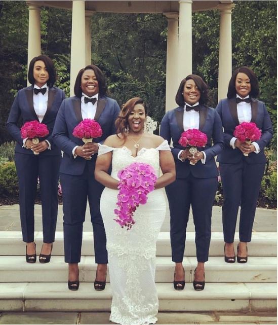 Bridesmaids Rock Suit Like Groomsmen In This Cute Wedding Photo