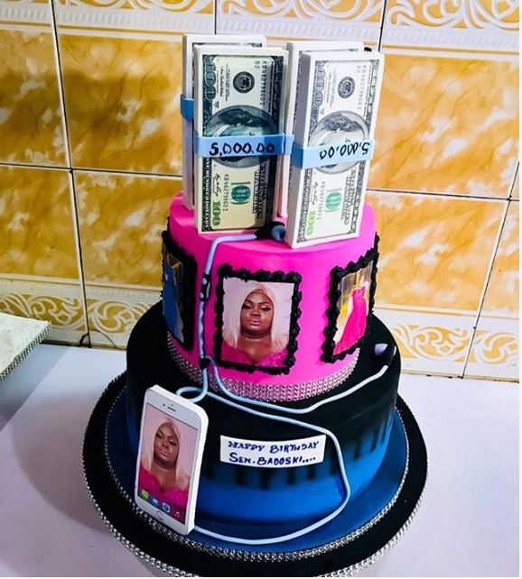 Eniola Badmus, popularly referred to as “Gbogbo Bigz girl” who is a popular Nigerian Yoruba actress and famous for her rascal roles in movies, has been given birthday cakes by fans and family.