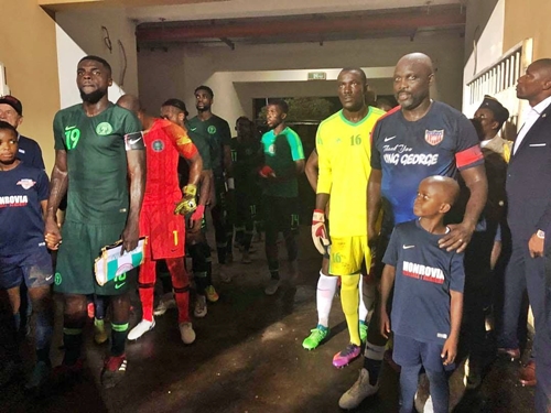 All of the Liberia players, including Weah's former teammate, 48-year-old James Debbah, wore shirts bearing the message "Thank you King George" on the front.