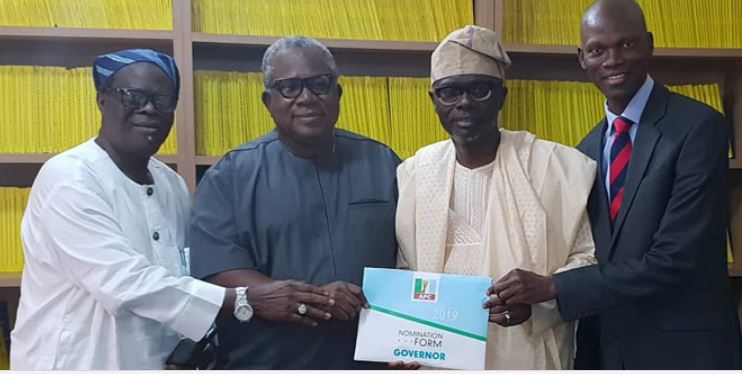 A Lagos State governorship aspirant on the platform of the All Progressives Congress, Jide Sanwo-Olu and aide to the Governor has submitted his nomination and expression of interest forms to run against his boss.