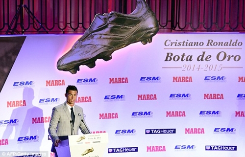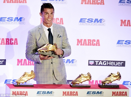 Cristiano Ronaldo poses with the European Golden Boot after becoming top scorer on the continent last term
