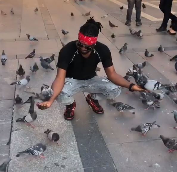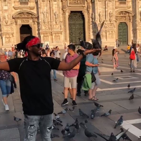 Nigerian singer, Paul Okoye has been spotted inside a historic Cathedral in Milan, Italy playing with birds.
