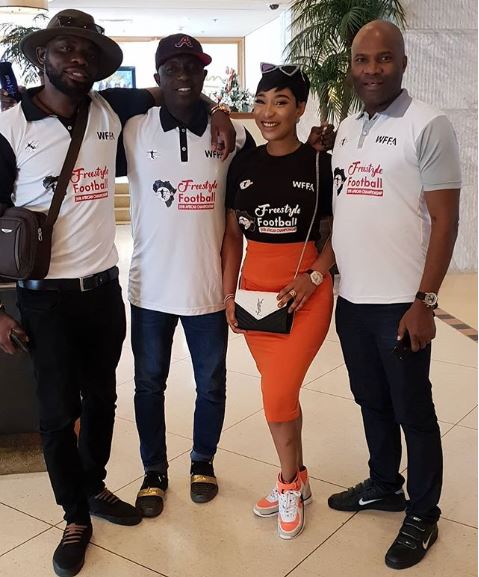 Tonto Dikeh was all smiles as she did the custom picture pose of a popular Instagram comedian, Broda Shaggi.