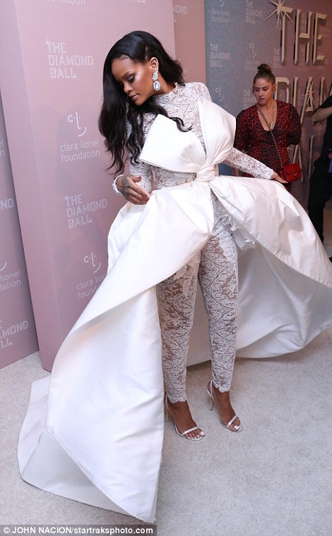The 30-year-old Barbadian-born beauty was a vision in a sensational white jumpsuit, from the Fall 2018 Alexis Mabille Couture collection, which featured a racy lace body with a vast bow adornment protecting her modesty, while shew as joined by the likes of the Hilton sister, Tiffany Haddish and Duckie Thot.