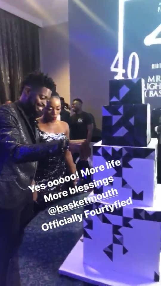 Nigerian comedian, Basketmouth, has held his 40th birthday party in Lagos as A-list entertainers turn up.