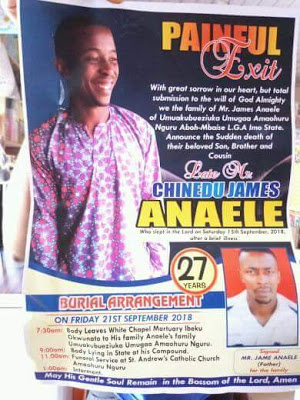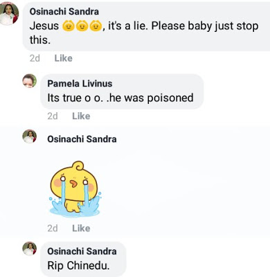 A friend and colleague who revealed that he buried on Friday, in his hometown Aboh-Mbaise, posted his photos and wrote: "Too hard to believe, God knows the best. Rest in peace chinedu my noble colleague.