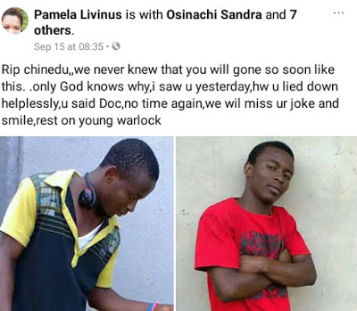 A Facebook user identified as Pamela Livinus, has taken to the social networking platform to share the heartbreaking news of a student of the Federal Polytechnic Nekede, Owerri, Imo state, who has just passed away.