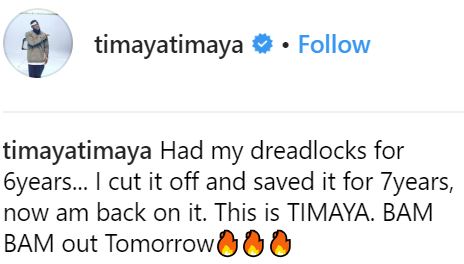 After years of putting them away, Nigerian pop sensation, Timaya has decided to rock his famous dreadlocks again.