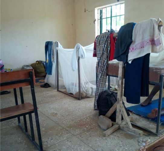 “I sleep inside the tank,” Gandoki’s friend who does not have a space in the classroom says. “We get mosquito net ourselves for N400, because if you wait for the army, mosquitoes will kill you here.”