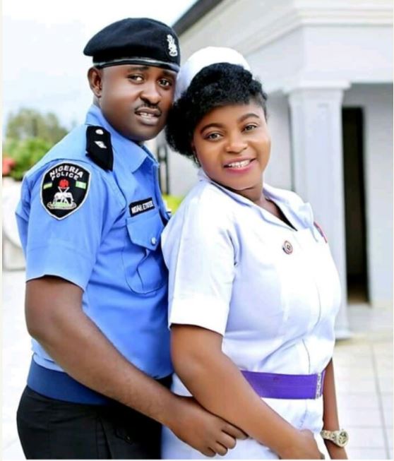 This is a trending photo of a beautiful nurse who is getting married to a gallant police officer of the laudable Nigeria Police Force.