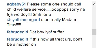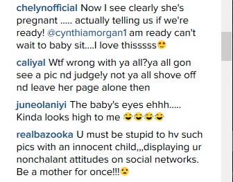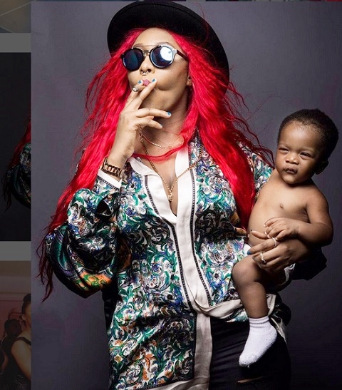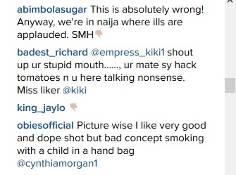 German Juice singer, Cynthia Morgan, is at it again. Some hours ago, she sort the attention of Nigerians by posting a picture of herself on Instagram, smoking what looked like a cigar while carrying a toddler.