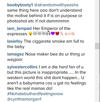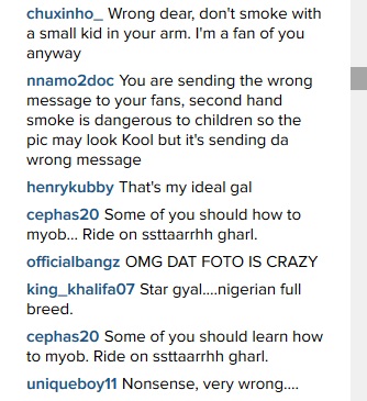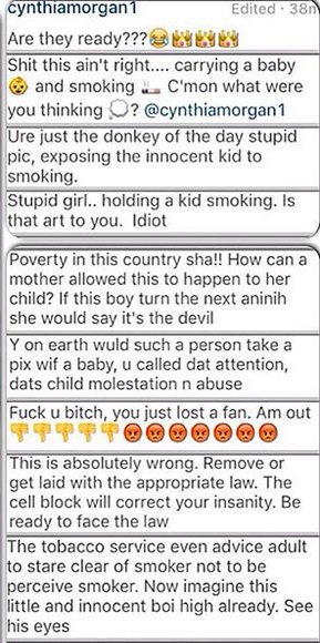 She got the much needed attention loaded with insults and threats as her fans criticized her for sharing a photo of herself smoking while holding a baby.