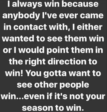 He wrote: "I always win because anybody I've ever come in contact with, I either wanted them to see them win or I would put them in the right direction to win!