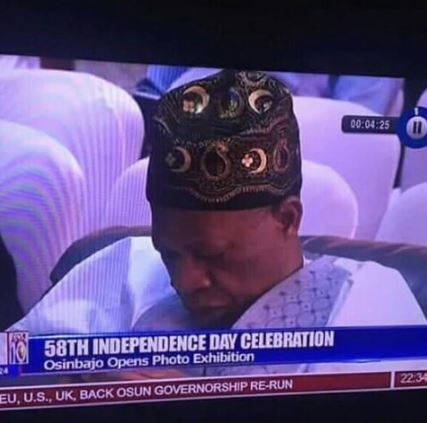 Nigerian Minister of Information Lai Mohammed was seen sleeping at an exhibition ahead of the 58th Independence day celebration.