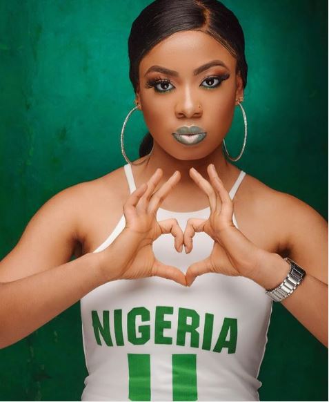 The Imo State University graduate wore a white cloth with Nigeria crested on it. The pictures have been admired by several of her Instagram followers.