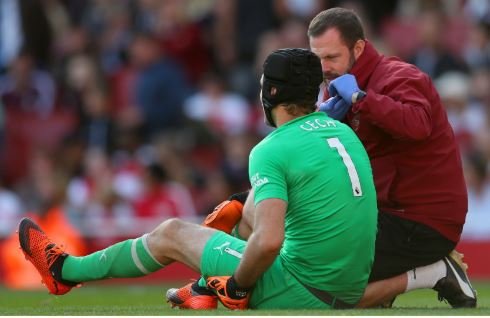 The experienced goalkeeper had to be substituted early in the second half of Saturday's 2-0 home victory .
