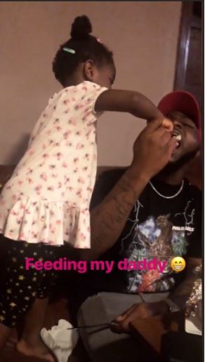The two look so cute together as Imade feeds Davido. They were also seen playing and hugging as Davido put smiles on his daughter's face.