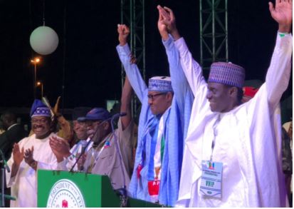 As 7,000 APC delegates gathered to endorse Buhari for a second term at the Square on Saturday October 6, pockets of mild commotion began as Buhari-branded wristbands were distributed by Directors of the Good Governance Ambassadors of Nigeria, GOGAN and the Buhari Unity Band (BUB) namely Hajia Zainab Mohammed, Dr. Abayomi Oyekoya and Mr. Yinka Oladunjoye.