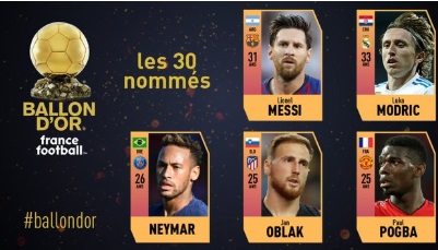 A host of top football talents on the planet are once again, set to battle it out for the prestigious Ballon d'Or award as a list for 2018 honours was unveiled on Monday by France Football, the organizers of the award event.