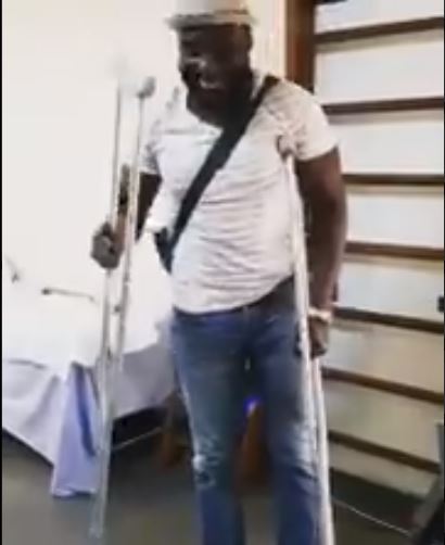 The music star took to his Twitter page on Thursday, October 11, 2018, where he shared a video of himself walking again with the aid of one of his crutches.