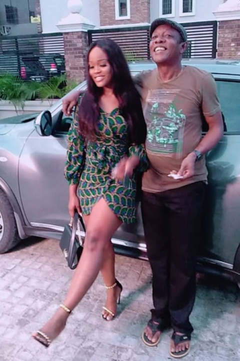 Photos shared on social media, show Cee-C on a movie set alongside actors; Nkem Owoh (Osuofia) and Rachael Okonkwo (Nkoli Nwa Nsukka).