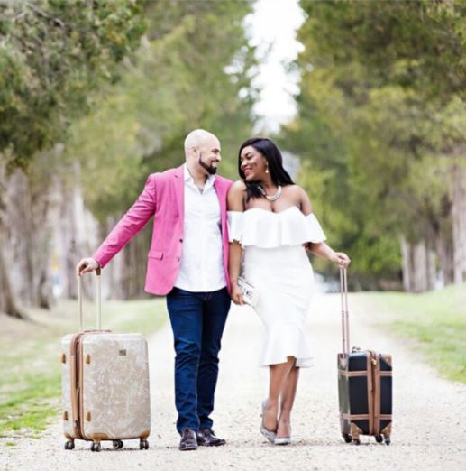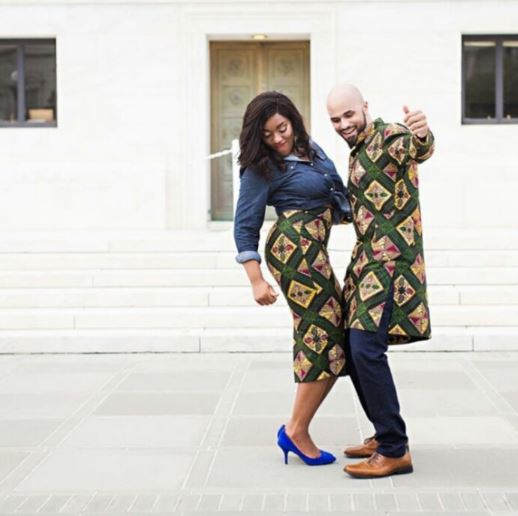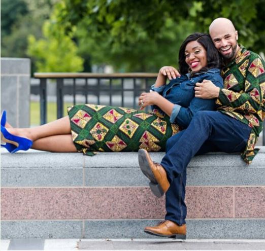 A lady and her man have posed for their pre-wedding photos in a rather interesting manner.