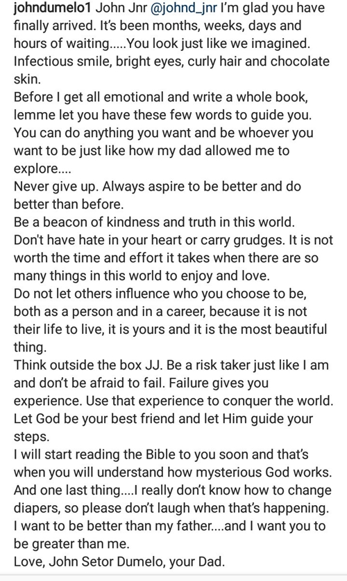 The Ghanaian who got married on May 12th in Accra, Ghana, shared the good news on his verified Instagram page and revealed that the boy has been named John Dumelo Junior.