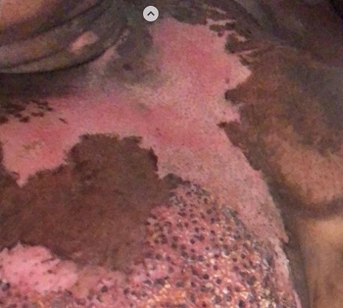 I woke up the next morning (Hardly ever sleeping the remaining part of that Night) to scalds on my chest.... Jesus!!! I think I died.... Like this is my Skin.., the hell... still in INTENSE burning Sensation, I was Sad, Beaten and Heart Broken...This wasn’t Happening.. Then the Positive Spirit in me Said, “Redddddddd it Coulda been Worse, Just be thankful” so I tried to be calm... I had to be under fan&Ac cos of the Burning Sensation... The Pain was on another level and just wen I was trying to wrap my head around wat my Positive Spirit said to me, by mid day, more Scalds had Surfaced