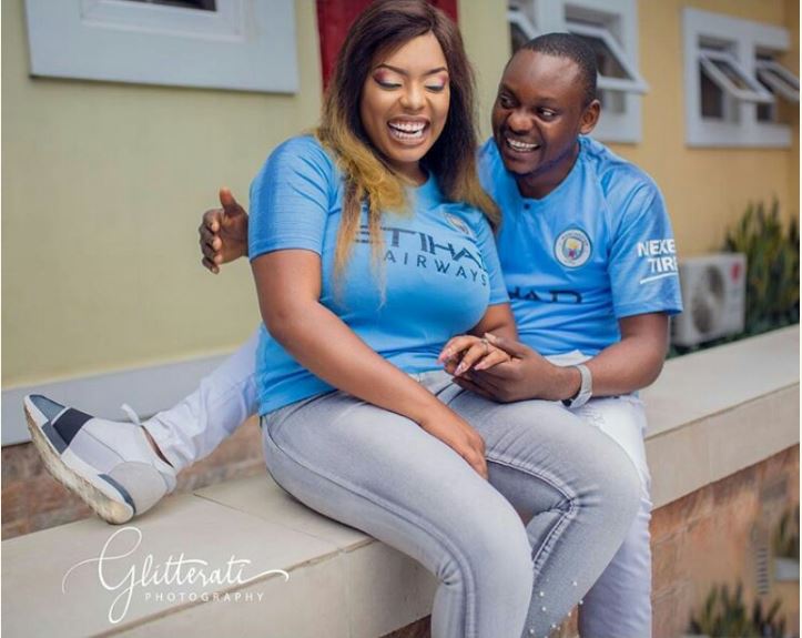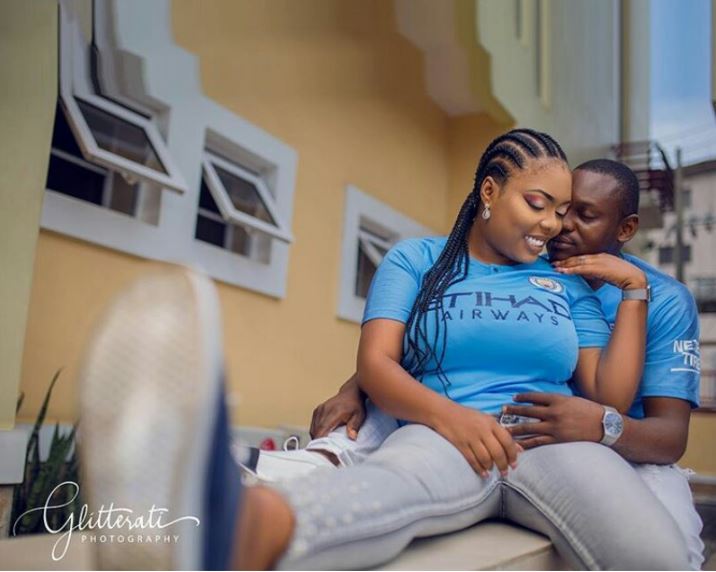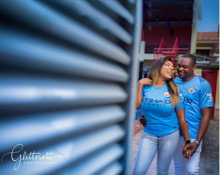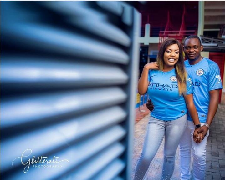 Nigerian couple rock the Manchester City jersey in stunning pre-wedding photoshoot.