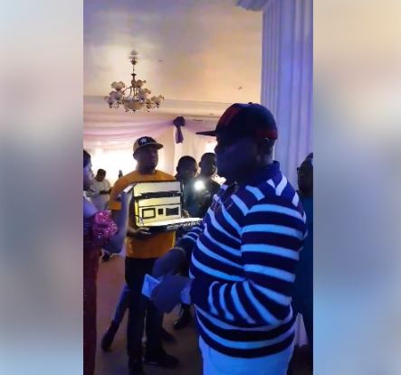 Nwanta Anayoeze, a Nigerian business mogul and Chief executive officer, Nwanta Anayoeze Oil And Gas Ltd, stole the show at a wedding today after spraying bundles of cash from a briefcase.