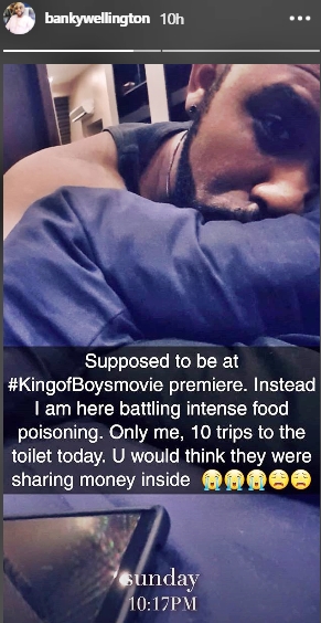 Multi-award winning singer, Olubankole Wellington, popularly known as Banky W, has taken to his Instagram page, to reveal that he is battling intense food poisoning.