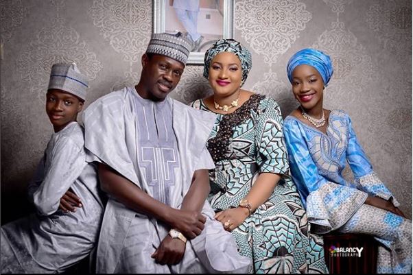 The highly respected movie star who has become one of the most talked about actors in Northern Nigeria, shared the photo on his Instagram showing him striking a pose for the camera alongside his wife and kids.