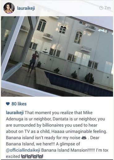 "That moment you realize that Mike Adenuga is ur neighbor,Dantata is ur neighbor,you are surrounded by billionaires you used to hear about on Tv as a child,Haaaa unimaginable feeling.Banana island isn't ready for my noise.Dear Banana island,we here!!!"