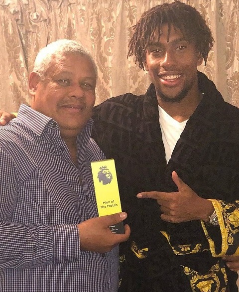 Alex Iwobi has been captured in a hilarious video clip which emerged on social media, handing his 'Man of the Match' prize to his dad after helping Arsenal trash Leicester 3-1.