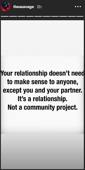 "All Over" crooner, Tiwa Savage has dished out a relationship advice in the middle of her trending controversial appearance in Wizkid's Fever Video.