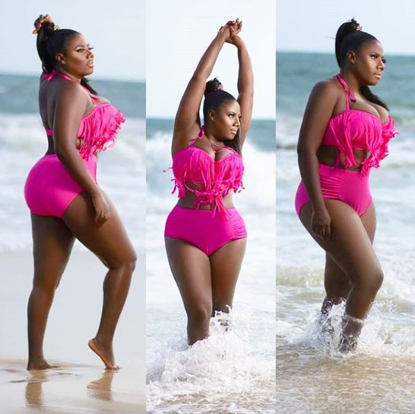 Popular Yoruba actress, Adediwura Becky Adesegha aka Blark Gold shares bikini photos as she hits the beach.