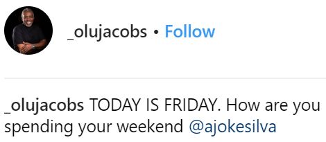 He captioned the photos: "TODAY IS FRIDAY. How are you spending your weekend @ajokesilva"