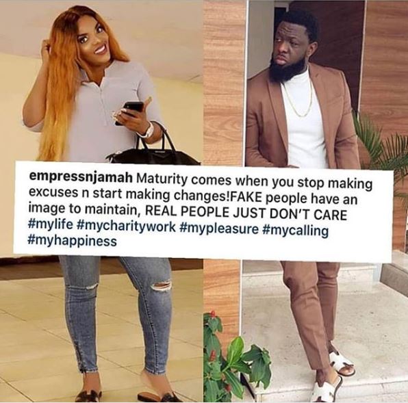 "Maturity comes when you stop making excuses n start making changes! FAKE people have an image to maintain, REAL PEOPLE JUST DON'T CARE" #mylife #mycharitywork #mypleasure #mycalling #myhappiness," she posted on her social media account.