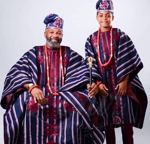 Veteran Nollywood actor, Yemi Solade, and his son have been captured on camera flaunting their traditional attires in new photos which emerged online.