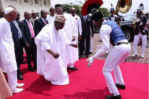 He showed off his dance steps as he recently arrived Akwa Ibom with chieftains of the Peoples Democratic Party. Governor Udom Emmanuel and his colleagues were thrown into laughter as Obasanjo gave the young man a run for his money.