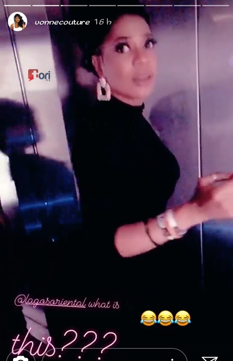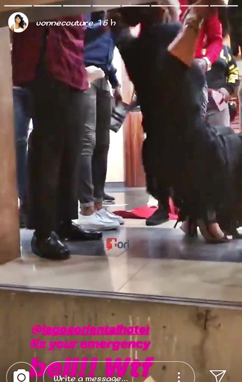 Celebrity fashion designer and television personally, Yvonne Nwosu of Vonne Couture, was captured on camera on Sunday while screaming for help when she was stuck in an elevator at the popular Oriental hotel in Victoria Island, Lagos.