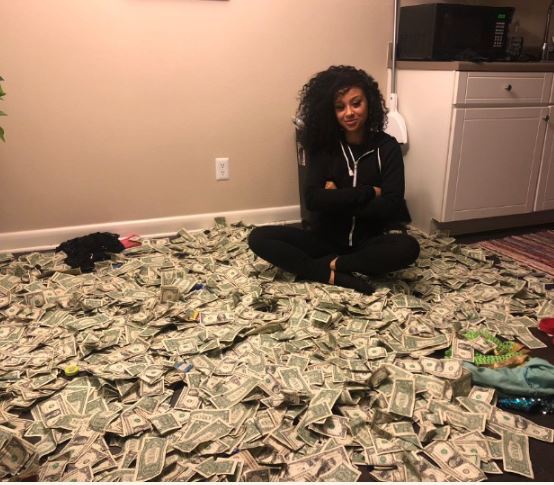 She took the stripper name "Sin". Now, she's taken to social media to rejoice after she cashed out. She shared photos of the money she made and captioned it, "Bag season baby."