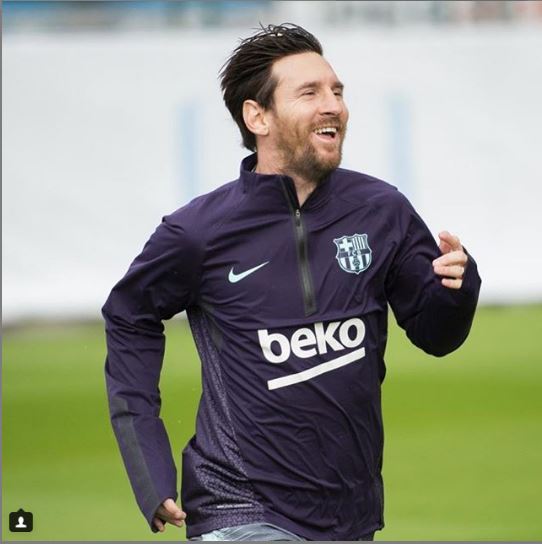 Lionel Messi All Smiles As He Returns To Training After Breaking His Arm (Photo)