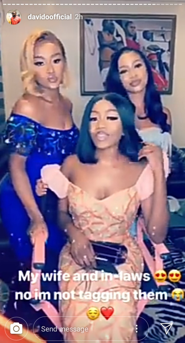 Sharing a clip of the sisters taken after they had gotten ready for the wedding, Davido wrote: "My wife and in-laws. No, I'm not tagging them."