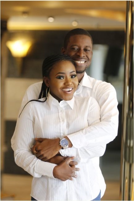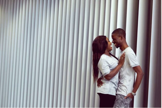 The eyes of the man was caught focused on his woman's bum as they struck beautiful poses for their romantic photo-shoot.